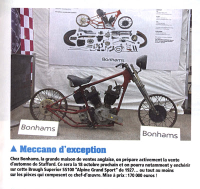 At Dijon in France, Bonhams had a stand and featured one of the Alpine Grand Sports, again loosely assembled.... the photo appeared in the French magazine La Vie de a Moto....
